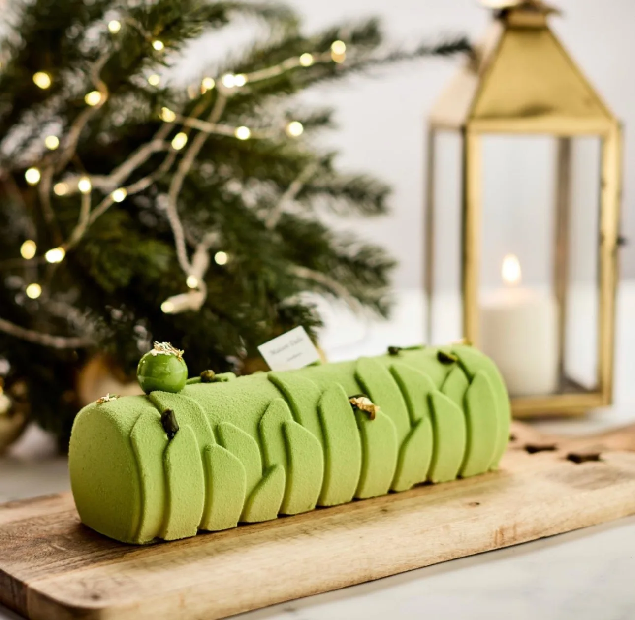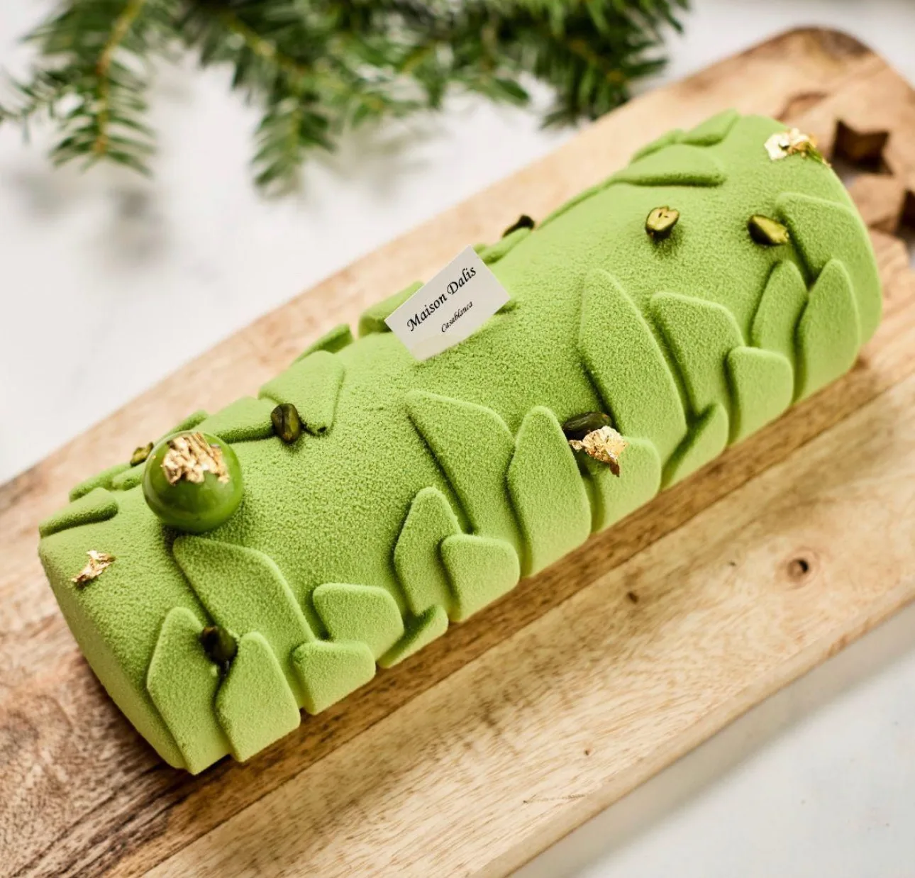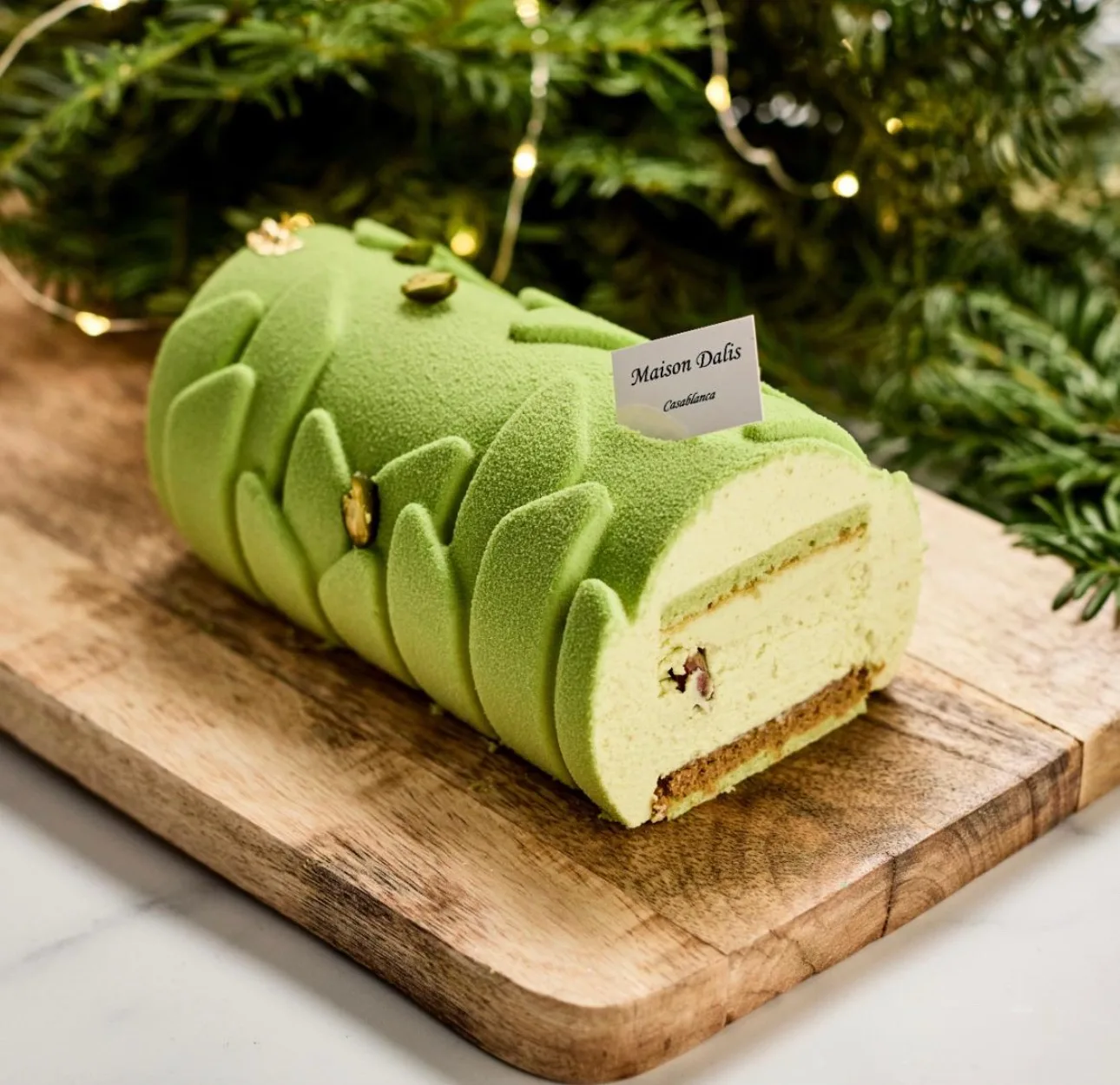 Biscuit pistache, croustillant praline pistache maison & mousse Ivoire Valrhona pistache