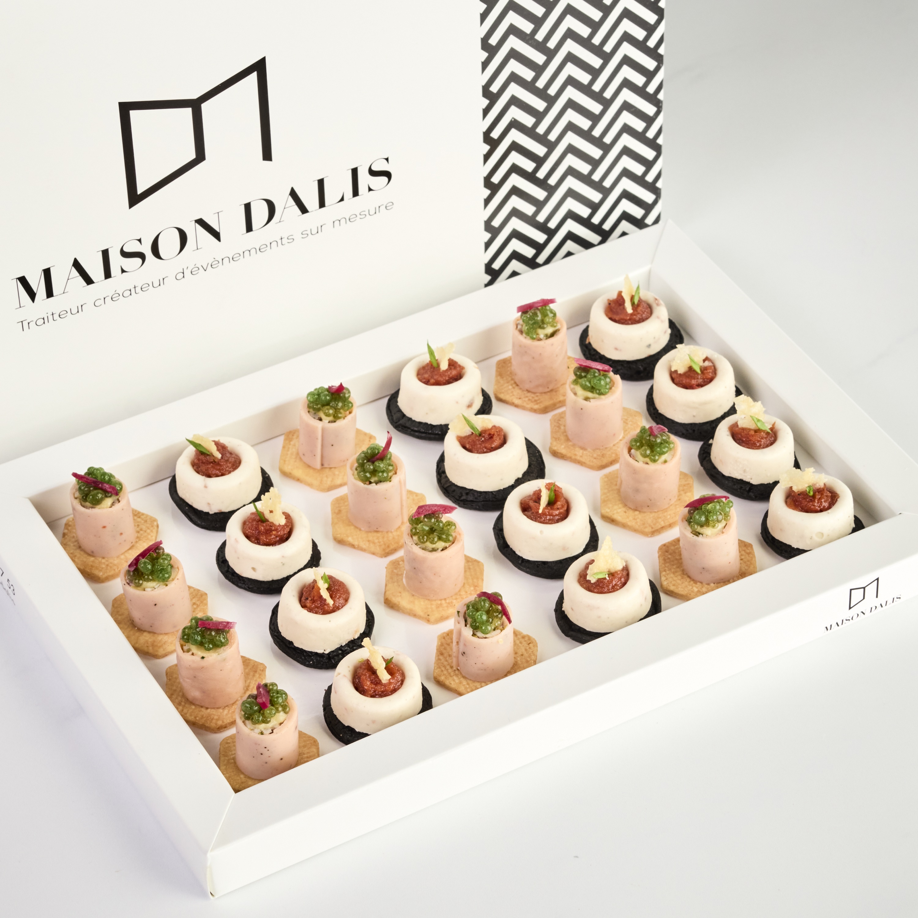 Tronçons de gambas olives rouges & perles de wasabi